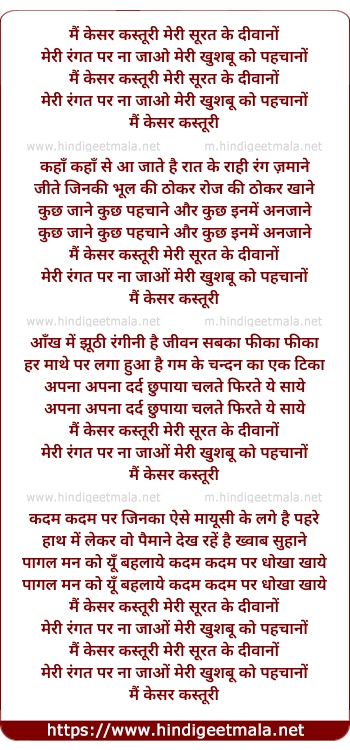 Poetic Translation - Lyrics of Main Kesar Kasturi Mere Surat Ke Diwano - मैं केसर कस्तूरी मेरी सूरत के दीवानों