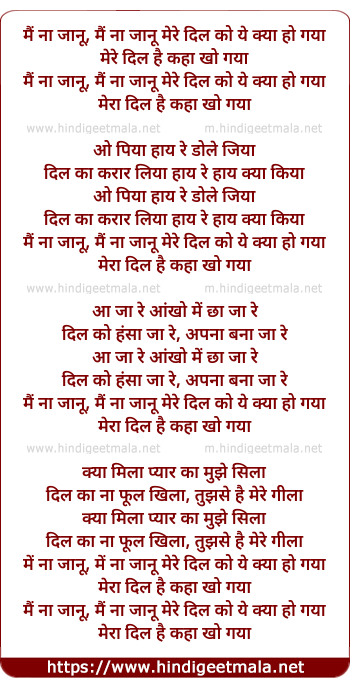 Lyrics of Main Na Janu Mere Dil Ko - मैं ना जानू मेरे दिल को ये क्या हो गया