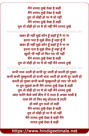 maine sayad tumhe dekha hai kahi maine