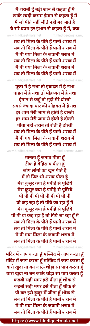 Lyrics of Main Sharabi Hoon - मैं शराबी हूँ
