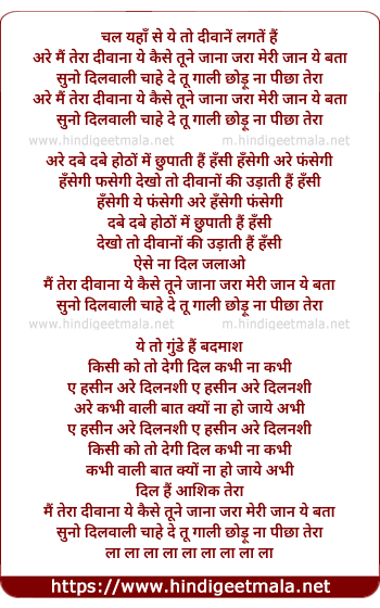 Lyrics of Main Tera Deewaana Yeh Kaise Tune Jaana - मैं तेरा दीवाना ये कैसे तूने जाना