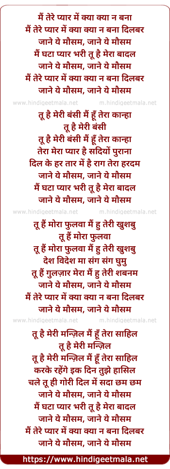 Lyrics of Main Tere Pyar Me Kya Kya Na Bana - मैं तेरे प्यार में क्या क्या न बना