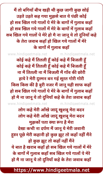 Lyrics of Main To Bagiya Beech Khadi Thi - मैं तो बगियाँ बीच खड़ी थी