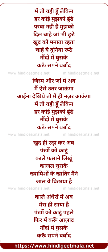 Lyrics of Main To Yahin Hu Lekin - मैं तो यही हूँ लेकिन