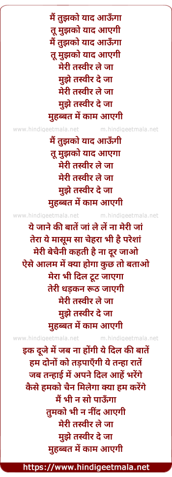 Lyrics of Main Tujhko Yaad Aaunga - मैं तुझको याद आऊँगा