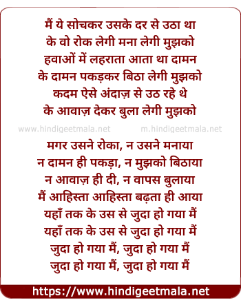 Lyrics of Main Ye Sochakar Usake Dar Se Uthaa Thaa - मैं ये सोचकर उसके दर से उठा था
