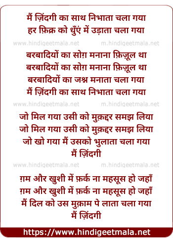 Main Zindagi Kaa Saath Nibhaataa Chalaa Gayaa - मैं ज़िंदगी का साथ निभाता चला गया