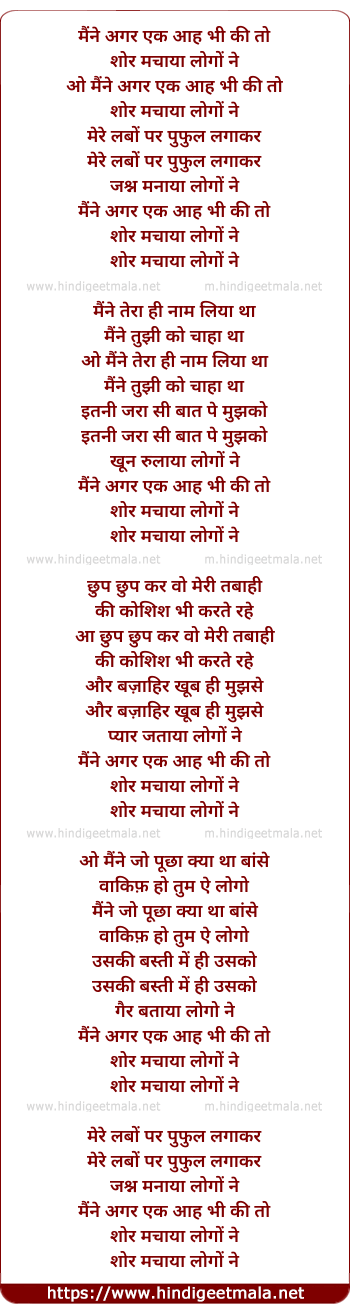 Lyrics of Maine Agar Ek Aah Bhi Ki To - मैंने अगर एक आह भी की तो