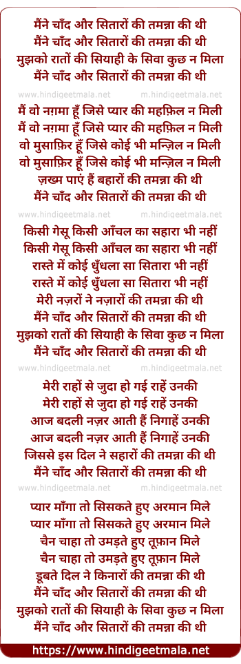 Lyrics of Maine Chand Aur Sitaro Ki Tamanna Ki Thi - मैंने चाँद और सितारों की तमन्ना की थी