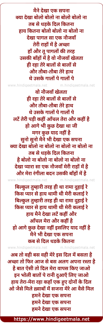 Lyrics of Maine Dekha Ek Sapna - मैने देखा एक सपना