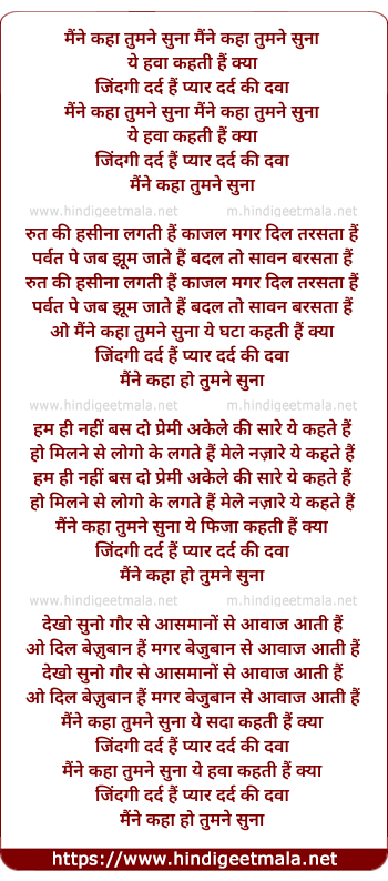 Lyrics of Maine Kaha Tumane Suna - मैंने कहाँ तुमने सुना