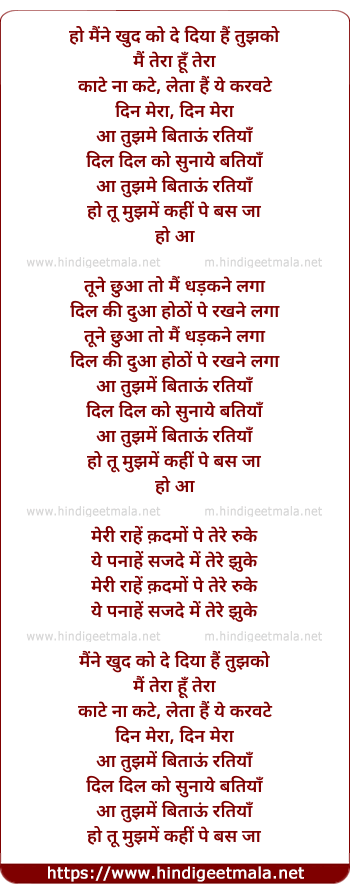Lyrics of Maine Khud Ko (Reprise) - हो मैंने खुद को दे दिया हैं तुझको