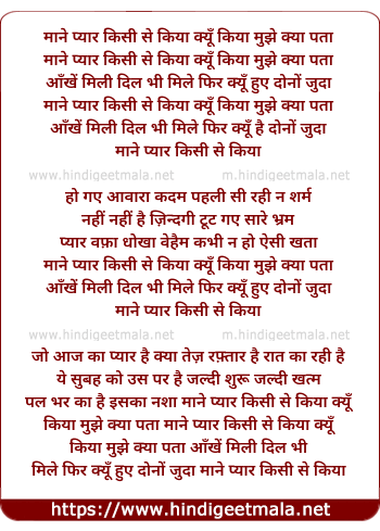 Lyrics of Maine Pyar Kisise Kiya - माने प्यार किसी से किया