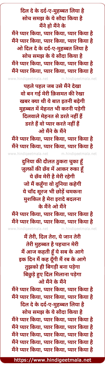 Lyrics of Maine Pyar Kiya Hai - मैंने प्यार किया है