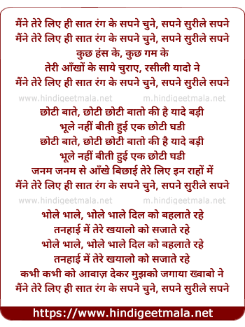 Lyrics of Maine Tere Liye Hi Saat Rang Ke Sapne Chune - मैंने तेरे लिए ही सात रंग के सपने चुने