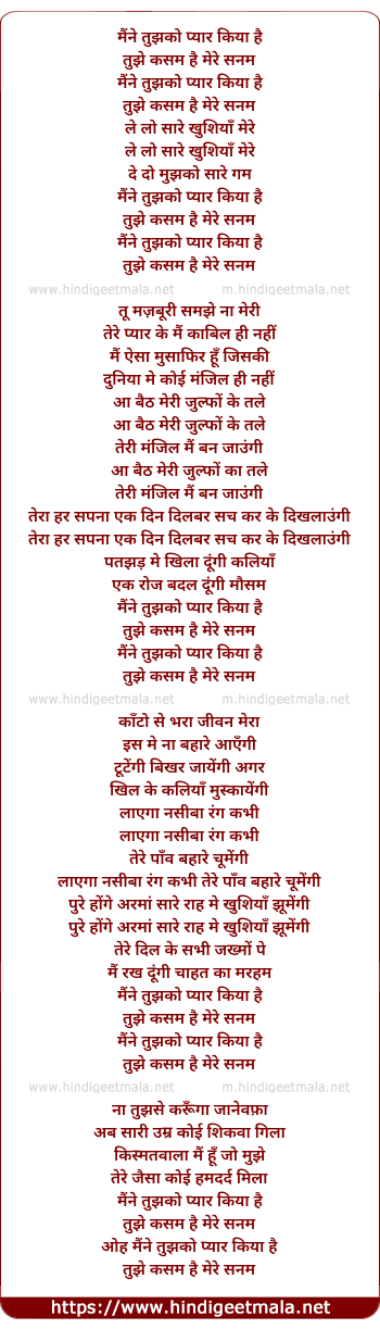 Lyrics of Maine Tujhko Pyar Kiya Hai - मैंने तुझको प्यार किया है