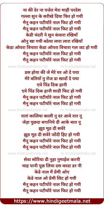 Lyrics of Mainu Kahen Patiore Nal Phit Ho Ga - ना की देर ना पजेत मेरा माही परदेस