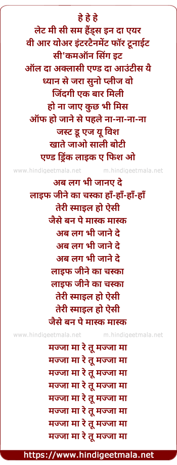 Lyrics of Majja Ma Re Tu - मज्जे मा रे तू