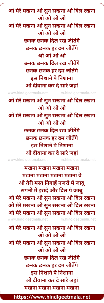 Lyrics of Makhna O Makhna - मखना ओ मखना