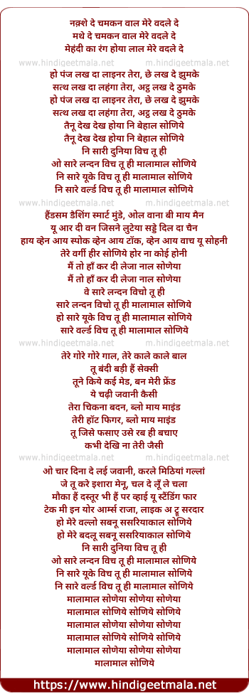 ni saare world vich tu hi malamaal soniye