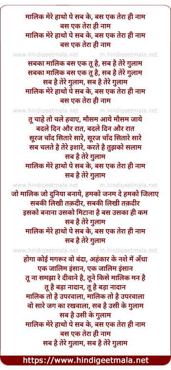 malik mere hotho pe sab ke, bas ek tera hi nam