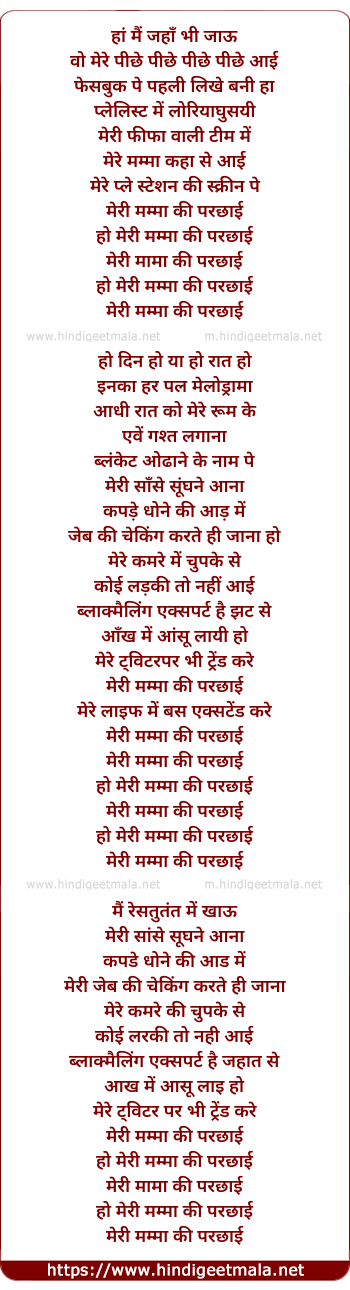 Lyrics of Mamma Ki Parchhai - मम्मा की परछाई