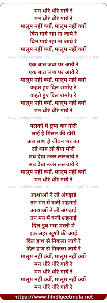 Lyrics of Man Dheere Dheere Gaye Re - मन धीरे धीरे गाये रे