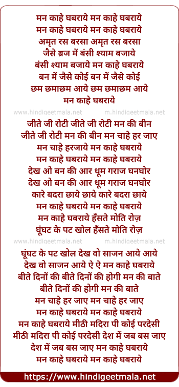 Lyrics of Man Kahe Ghabraye - मन काहे घबराई