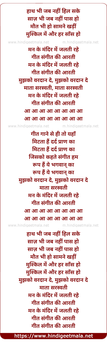 Lyrics of Man Ke Mandir Me - मन के मंदिर में