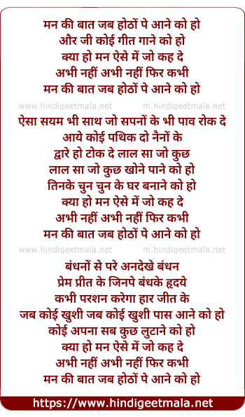 Lyrics of Man Ki Baat Jab Hotho Pe Aane Ko Ho - मन की बात जब होठों पे आने को हो