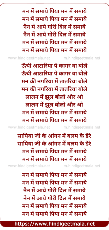 Lyrics of Man Me Samaye Piya Man Me Samaye