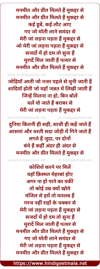 Lyrics of Man Meet Aur Preet Milte Hai (Part 2) - मनमीत और प्रीत मिलते हैं मुकद्दर से