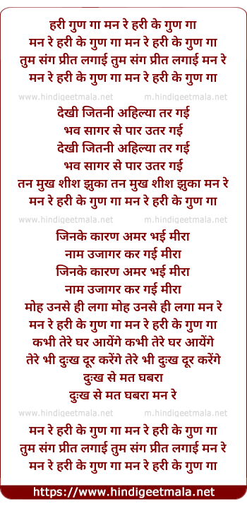 Lyrics of Man Re Hari Gun Gaa - मन रे हरी के गुण गा