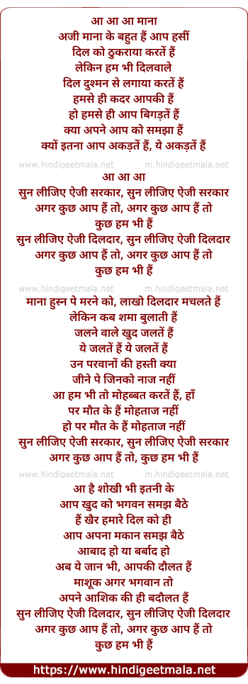 Lyrics of Mana Ki Bahut Hai Aap Haseen - माना के बहुत हैं आप हसीं