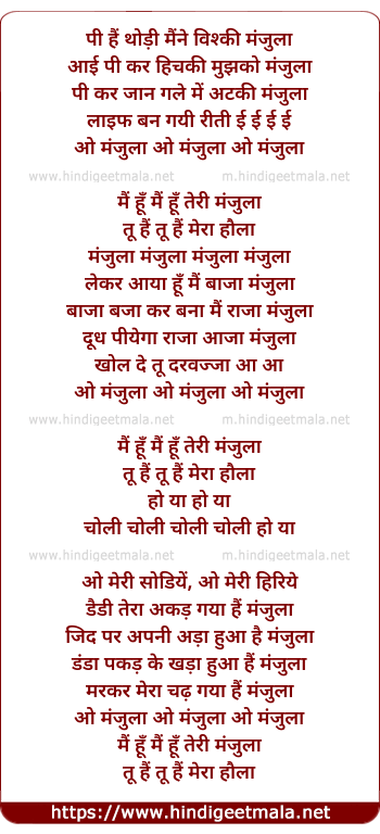 Lyrics of Manjulaa - पी हैं थोड़ी मैंने विश्की मंजुला