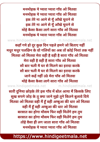 Lyrics of Manmohak Ye Pyara Pyara Gaon - मनमोहक ये प्यारा प्यारा गाँव