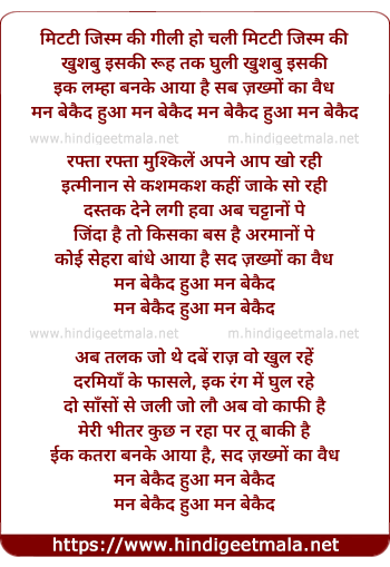 Lyrics of Man Beqaid Hua - Anarkali - मन बेकैद हुआ