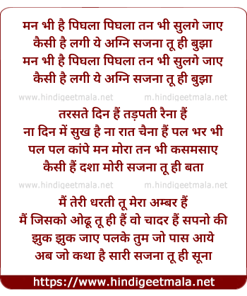 Lyrics of Mann Bhi Pighla - मन भी पिघला