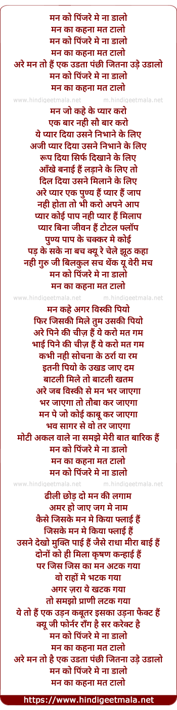Lyrics of Mann Ko Pinjre Me Na Daalo - मन को पिंजरे मे ना डालो