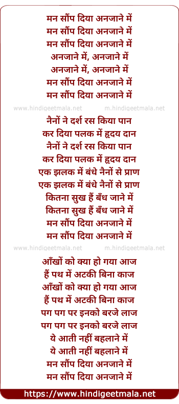 Lyrics of Mann Saunp Diya Anjane Me - मन सौंप दिया अनजाने में