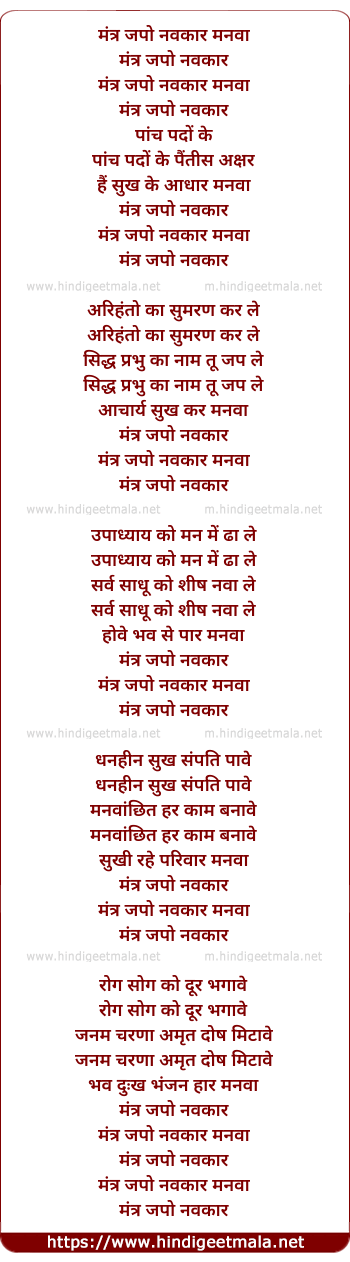 Lyrics of Mantr Japo Navkar Manva - मंत्र जपो नवकार मनवा