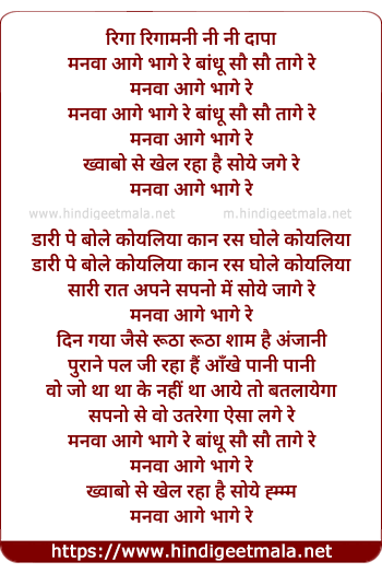 Lyrics of Manwa Aage Bhage Re - मनवा आगे भागे रे