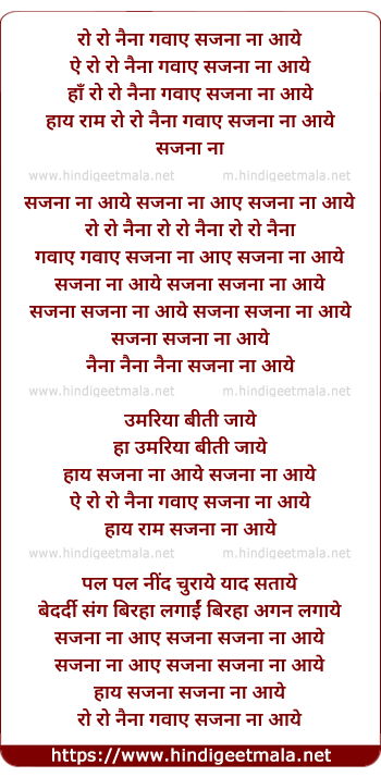 Lyrics of Naina Ganwaye Sajna Na Aaye - नैना गवाए सजना ना आये