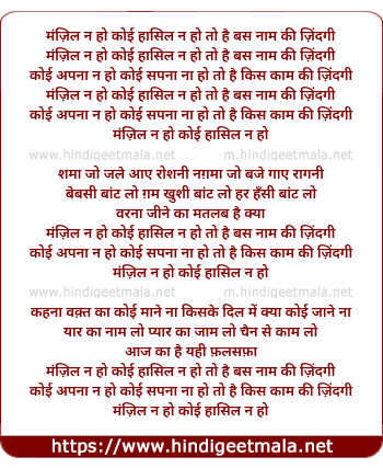 Lyrics of Manzil Na Ho, To Hai Bas Naam Ki Zindagi - मंज़िल ना हो, तो है बस नाम की ज़िंदगी