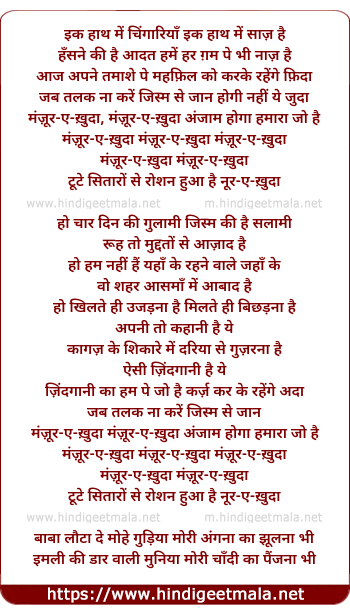 Lyrics of Manzur-e-khudaa - मंज़ूर-ए-ख़ुदा