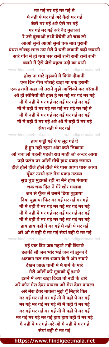 Lyrics of Mar Gayi Mar Gayi Mai To - मर गई मर गई मैं तो