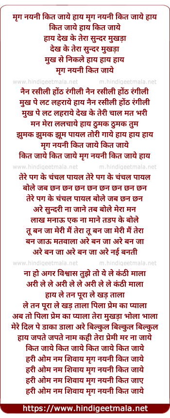 Lyrics of Marag Nayani Kit Jaye - मृग नयनी कित जाये