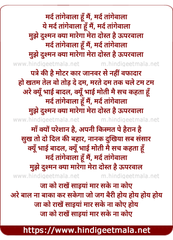 Lyrics of Mard Tangewala Main Hu Mard Tangewala - मर्द तांगेवाला हूँ मैं, मर्द तांगेवाला