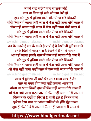 Lyrics of Mare Tujh Pe Duniya Sari, Phans Nahi Jana Gori Jaal Me - मरे तुझ पे दुनिया सारी, फँस नहीं जाना गोरी जाल में