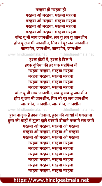 Lyrics of Marhaba Ho Marhaba, Ishq Honton Pe Ishq Hai Dil Mein - मरहबा हो मरहबा, इश्क होठों पे इश्क है दिल में